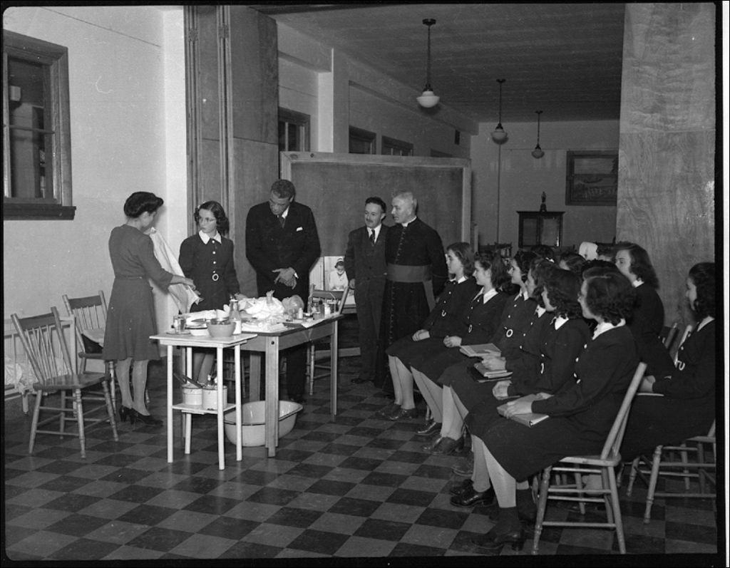 Monsieur Bellegarde d'Haïti en visite à l'école ménagère de Loretteville, [Vers 1940], Archives nationales à Québec, Fonds Ministère de la Culture et des Communications, (03Q,E6,S7,SS1,D2,P22410), Neuville Bazin.