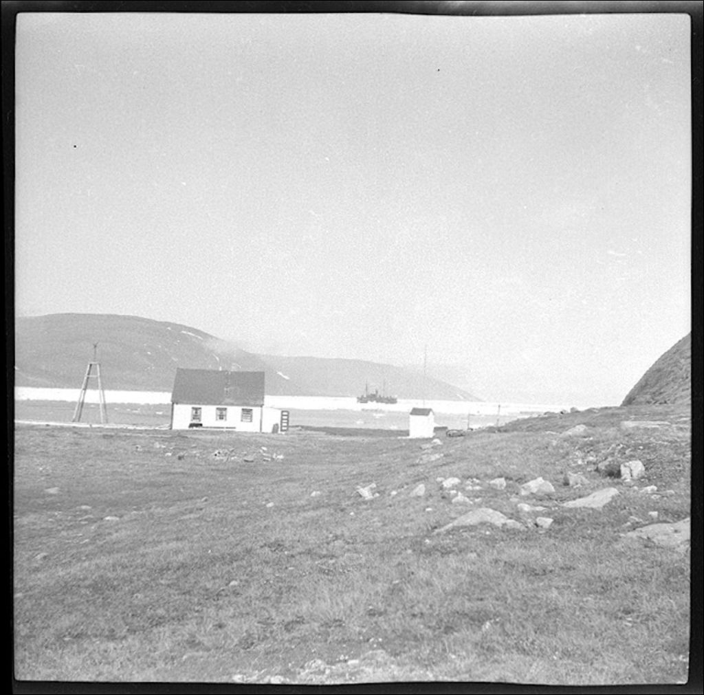 Maison du gérant de la Hudson Bay Company et le Nascopie pris dans la glace dans la baie de Wolstenholm