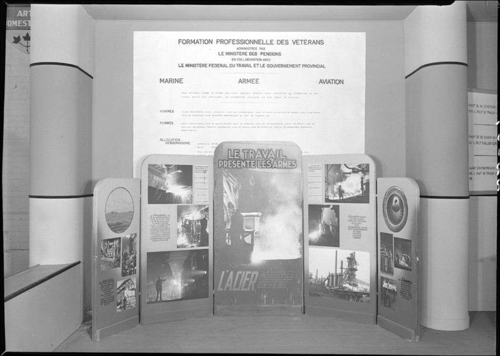 Kiosque de l'office national du film à l'exposition provinciale de Québec de 1944, 1944, Archives nationales à Québec, Fonds Ministère de la Culture et des Communications, (03Q,E6,S7,SS1,D2,P22507), Raymond Audet.
