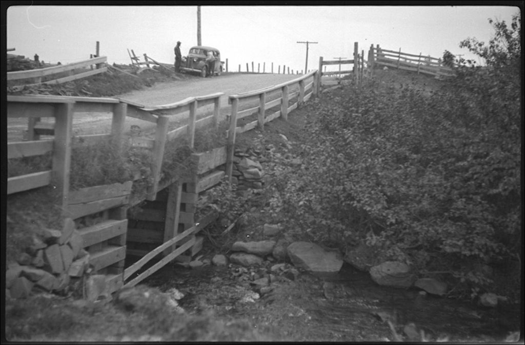 Pont sur le ruisseau du Cap à la Baleine à Sainte-Félicité, comté de Matane, 1944, Archives nationales à Québec, Fonds Ministère de la Culture et des Communications, (03Q,E6,S7,SS1,D2,P23067), G. Brière.