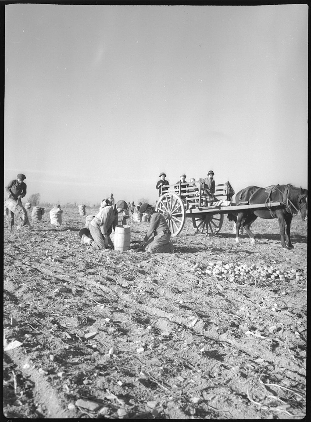 Récolte de pommes de terre sur la ferme A. Breton à Saint-Michel-de-Bellechasse, 1944, Archives nationales à Québec, Fonds Ministère de la Culture et des Communications, (03Q,E6,S7,SS1,D2,P23273), J.W. Michaud.