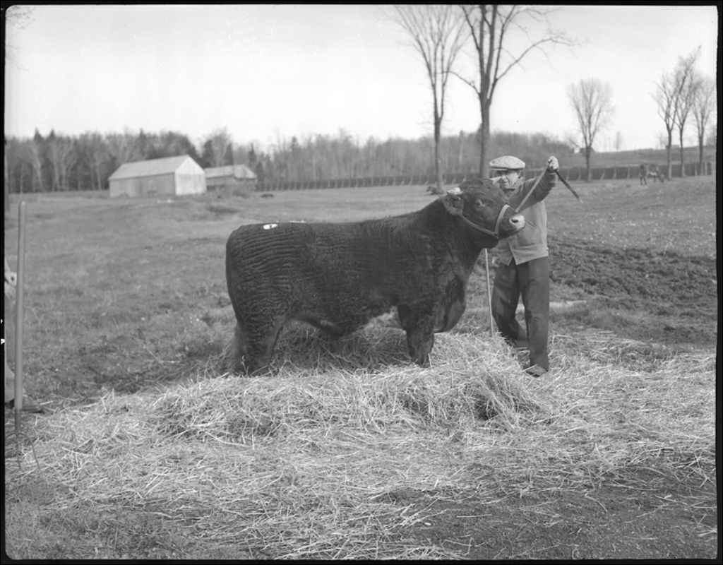 Bouvillons de boucherie à l'exposition de Sherbrooke, 1944, Archives nationales à Québec, Fonds Ministère de la Culture et des Communications, (03Q,E6,S7,SS1,D2,P23279), Paul Carpentier.