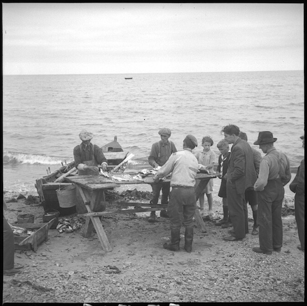 Préparation du poisson à Cloridorme en Gaspésie, 1944, Archives nationales à Québec, Fonds Ministère de la Culture et des Communications, (03Q,E6,S7,SS1,D2,P23518), J.M. Talbot.
