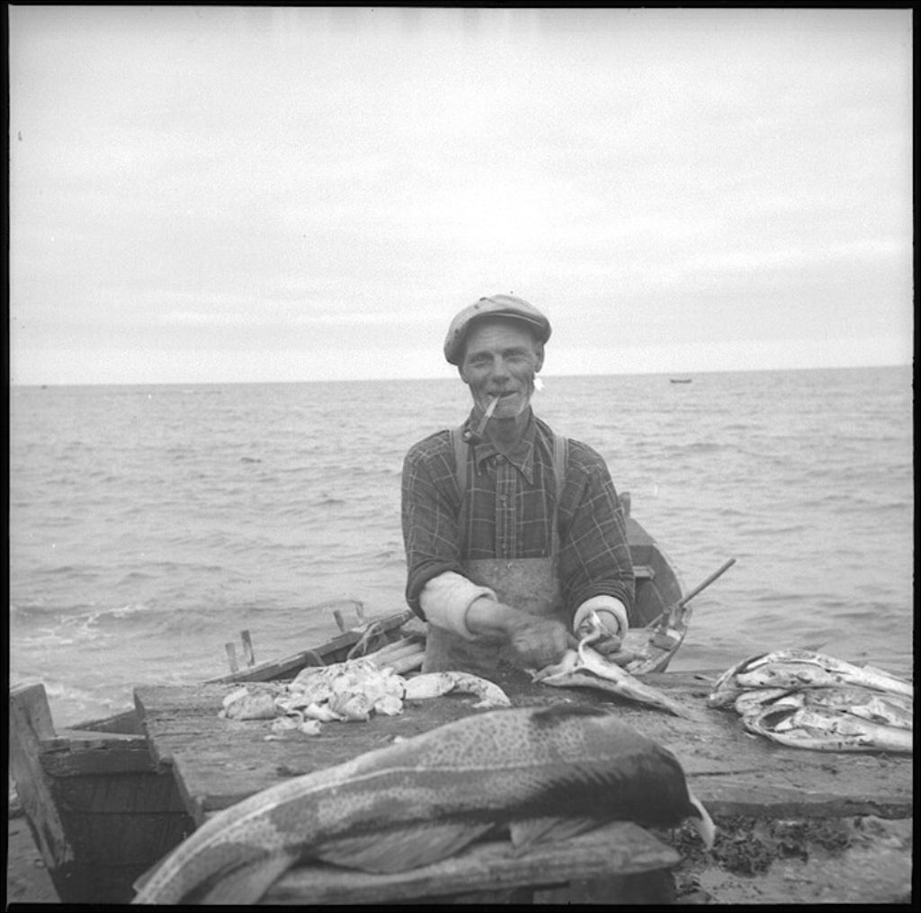 Préparation du poisson à Cloridorme en Gaspésie, 1944, Archives nationales à Québec, Fonds Ministère de la Culture et des Communications, (03Q,E6,S7,SS1,D2,P23521), J.M. Talbot.