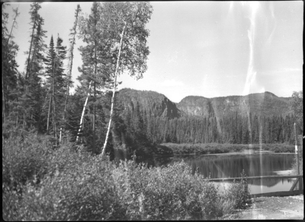 Paysage forestier le long de la rivière Godbout, 1941, Archives nationales à Québec, Fonds Ministère de la Culture et des Communications, (03Q,E6,S7,SS1,D2,P2361), René Pomerleau.