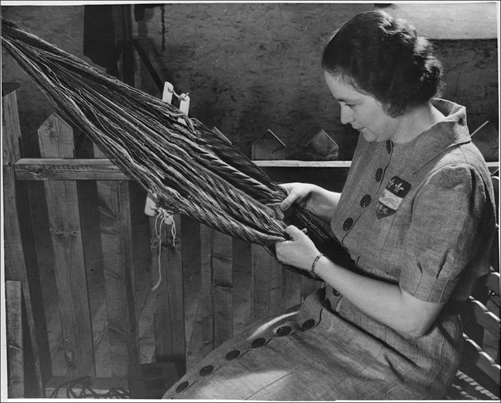 Femme tissant une ceinture fléchée, 1944, Archives nationales à Québec, Fonds Ministère de la Culture et des Communications, (03Q,E6,S7,SS1,D2,P23652), Neuville Bazin.