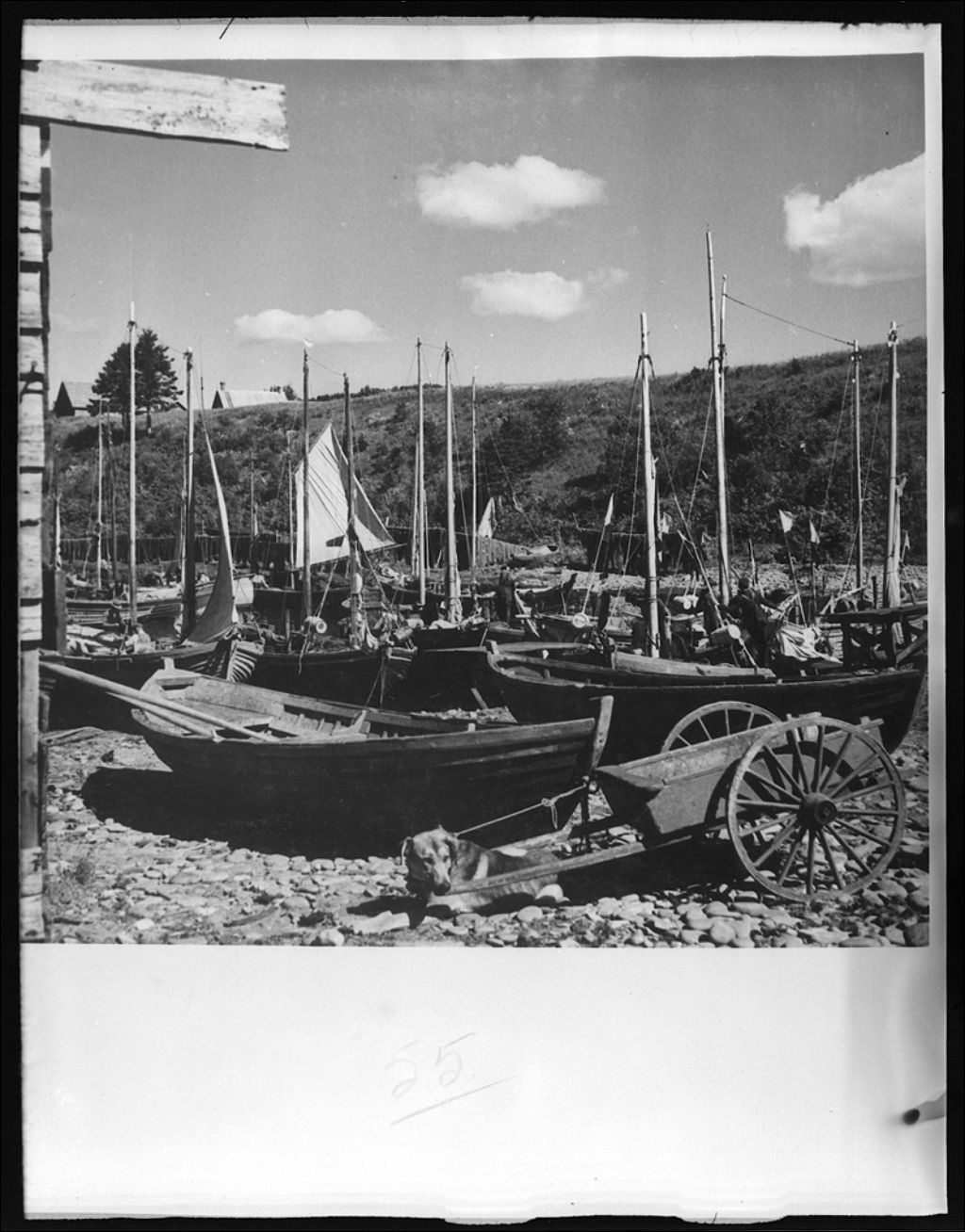 Quelques barques de pêcheurs dans le havre de l'Anse-aux-Gascons en Gaspésie