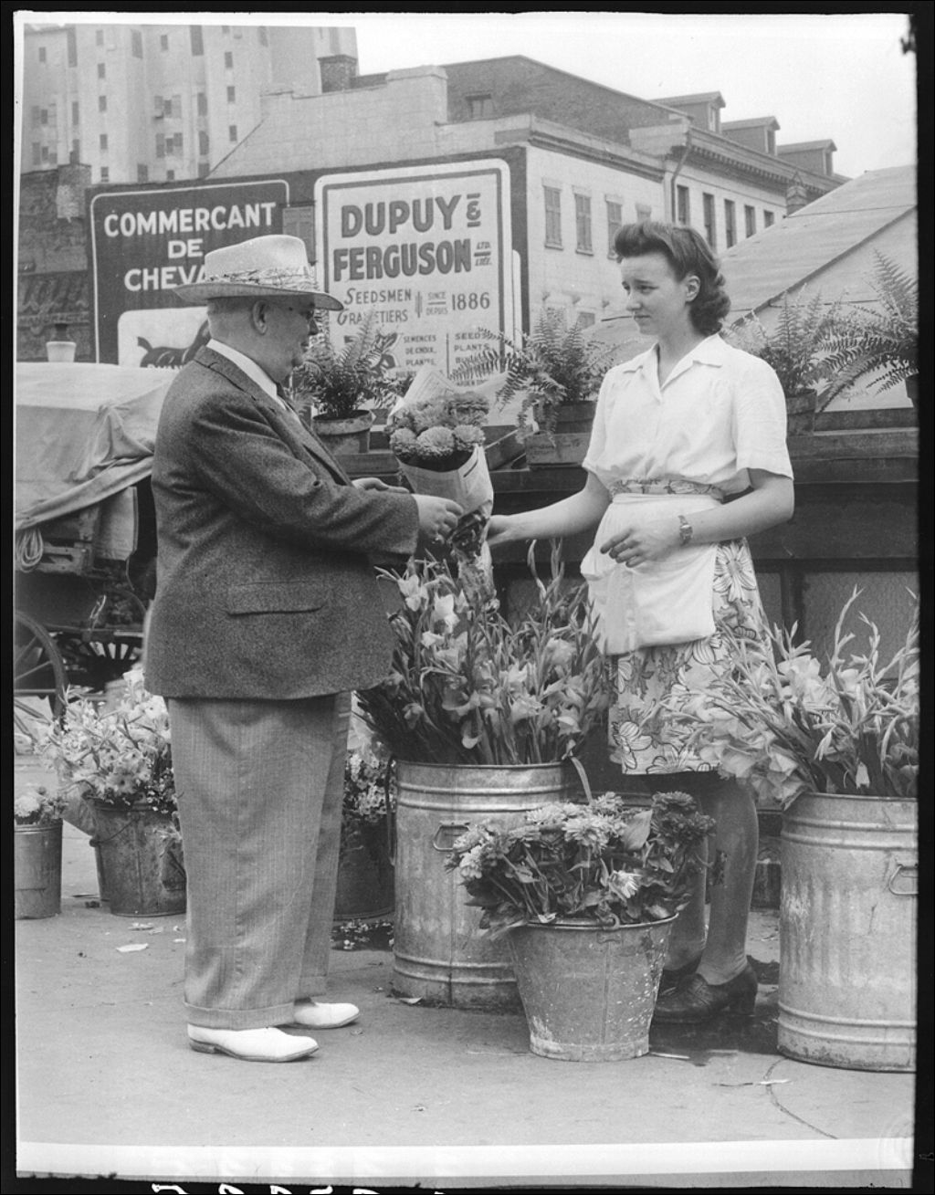 Jeune fille vendant des fleurs au marché Bon-Secours à Montréal