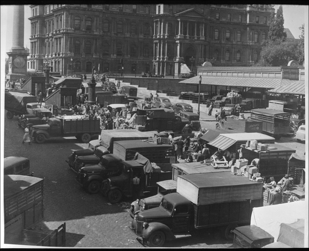 Le marché Bon-Secours à Montréal, 1943, Archives nationales à Québec, Fonds Ministère de la Culture et des Communications, (03Q,E6,S7,SS1,D2,P23831), Herménégilde Lavoie.