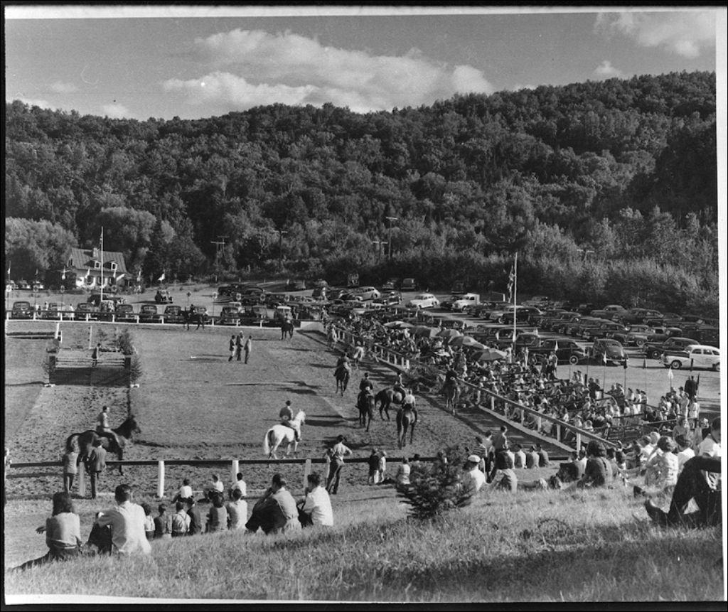 Champ de course de chevaux au nord de Montréal, 1943, Archives nationales à Québec, Fonds Ministère de la Culture et des Communications, (03Q,E6,S7,SS1,D2,P23928), Herménégilde Lavoie.