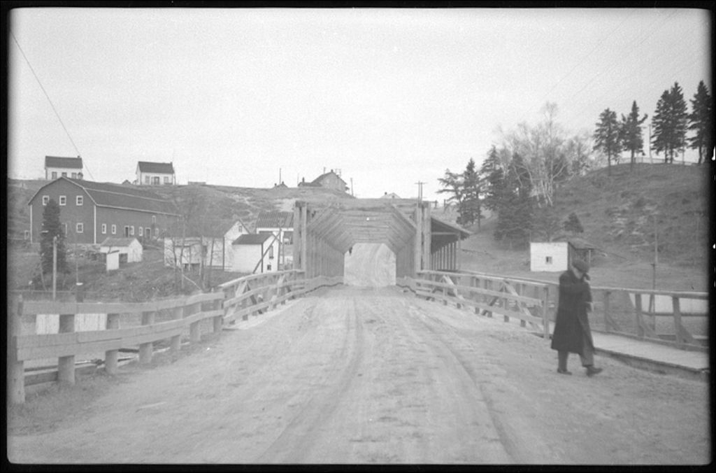Pont à Sault-au-Mouton, comté de Saguenay, 1944, Archives nationales à Québec, Fonds Ministère de la Culture et des Communications, (03Q,E6,S7,SS1,D2,P24026), L. Martin.