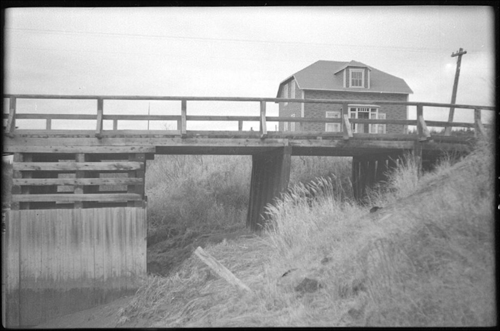 Pont sur le ruisseau Vert dans le canton Ragueneau, comté de Saguenay, 1944, Archives nationales à Québec, Fonds Ministère de la Culture et des Communications, (03Q,E6,S7,SS1,D2,P24063), L. Martin.
