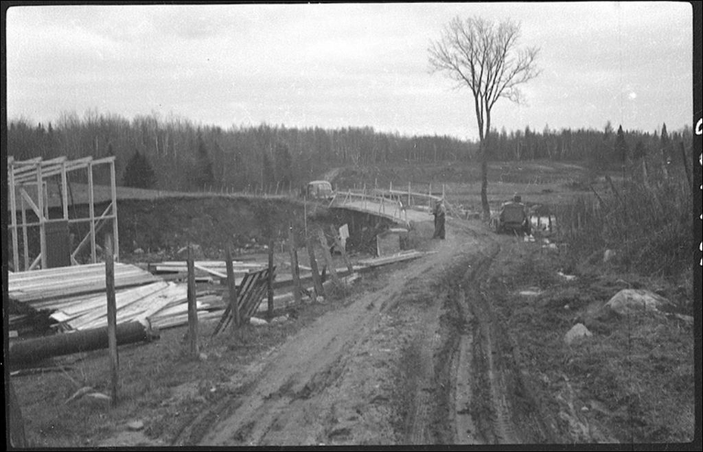 Pont en construction sur la rivière Bélisle à Notre-Dame-de-Portneuf, 1944, Archives nationales à Québec, Fonds Ministère de la Culture et des Communications, (03Q,E6,S7,SS1,D2,P24108), Marcel Levert.