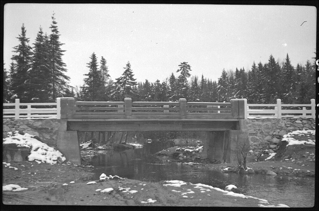 Pont Jardine fini à Rock Forest, comté de Sherbrooke, 1944, Archives nationales à Québec, Fonds Ministère de la Culture et des Communications, (03Q,E6,S7,SS1,D2,P24162), Louis-Philippe Poudrier.