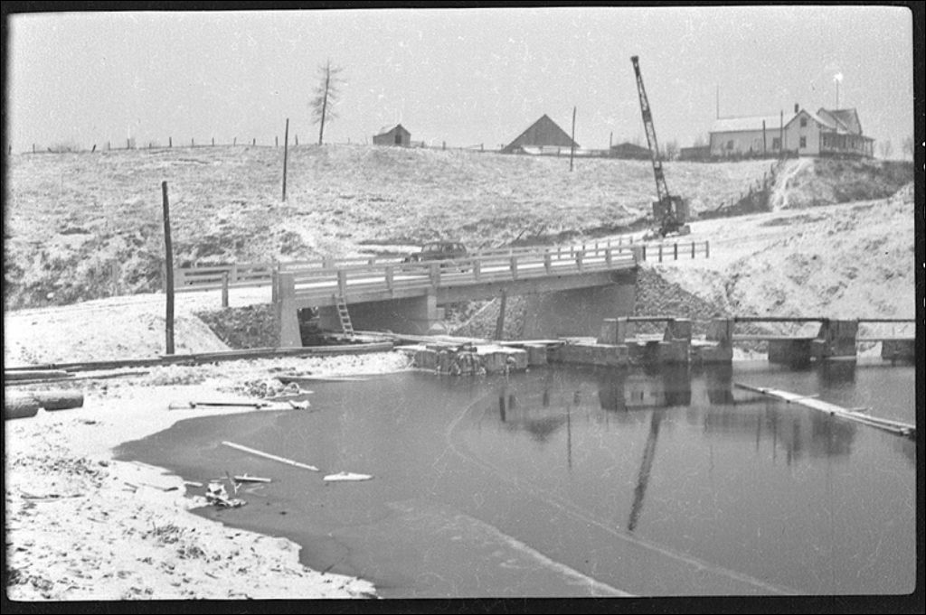 Le pont Joliette à Saint-Isidore, canton Laverlochère, Abitibi, 1944, Archives nationales à Québec, Fonds Ministère de la Culture et des Communications, (03Q,E6,S7,SS1,D2,P24221), H.C. Dupuis.