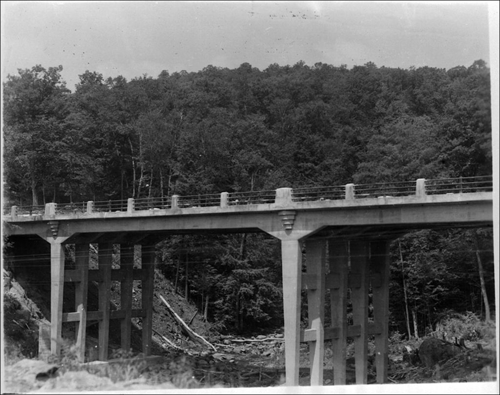 Viaduc sur la route Montréal-Ottawa à Calumet, comté d'Argenteuil, 1944, Archives nationales à Québec, Fonds Ministère de la Culture et des Communications, (03Q,E6,S7,SS1,D2,P24332), Roméo Savary.