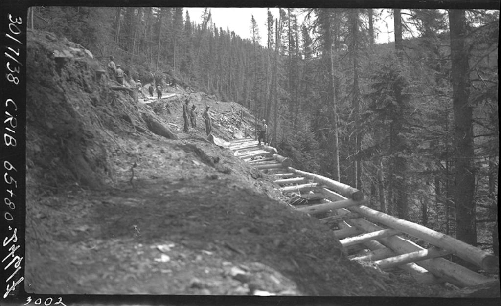 Soutainement pour la construction d'une route à flanc de montagne, 1944, Archives nationales à Québec, Fonds Ministère de la Culture et des Communications, (03Q,E6,S7,SS1,D2,P24617), Arthur Boucher.