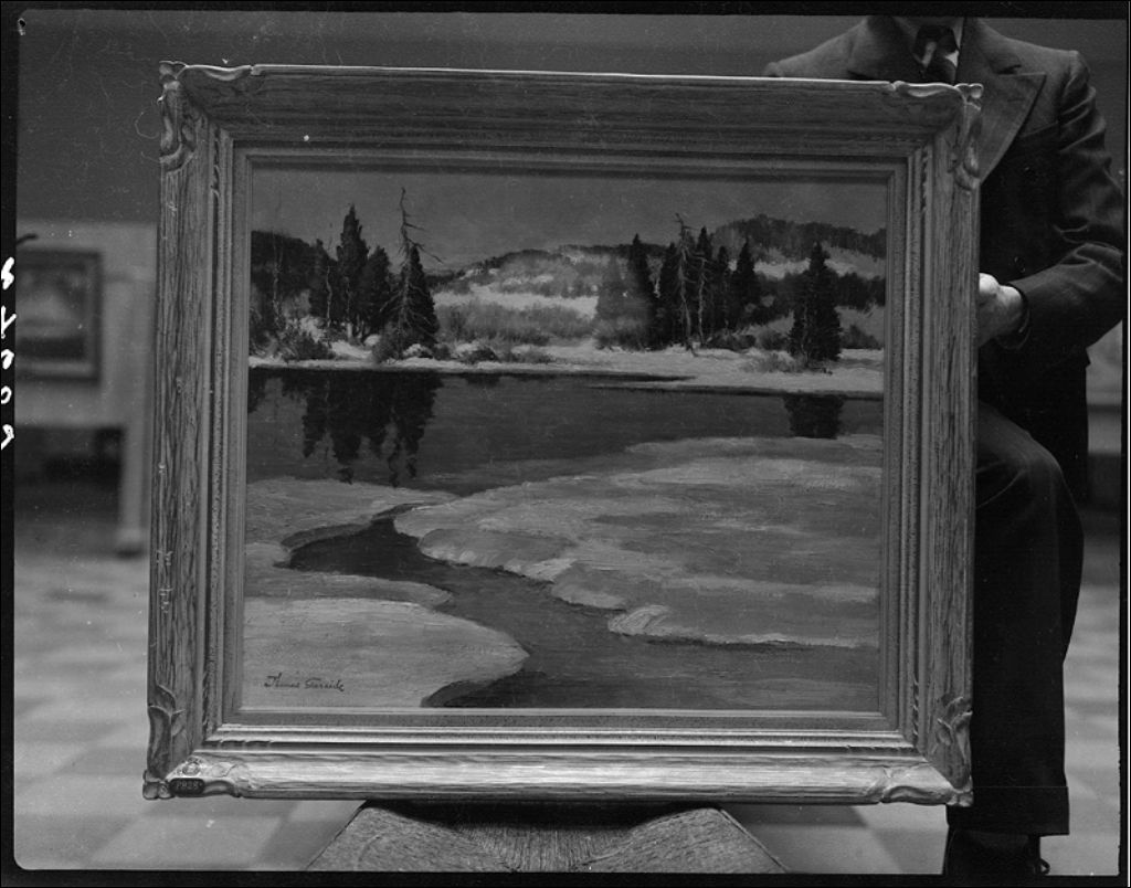 Peinture au Musée provincial de Québec, 1945, Archives nationales à Québec, Fonds Ministère de la Culture et des Communications, (03Q,E6,S7,SS1,D2,P24683), Neuville Bazin.