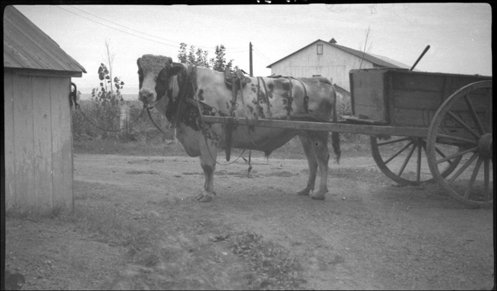 Taureau dompté pour expédier en Abitibi, 1937, Archives nationales à Québec, Fonds Ministère de la Culture et des Communications, (03Q,E6,S7,SS1,D2,P248), Marc Leclerc.