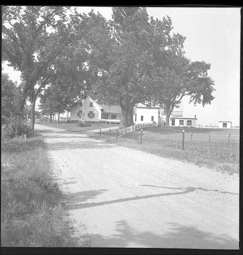 Ferme Richelieu à Saint-Charles. Meunier, maison et grange, comté de Saint-Hyacinthe, 1941, Archives nationales à Québec, Fonds Ministère de la Culture et des Communications, (03Q,E6,S7,SS1,D2,P24858), Aug. Mailloux.