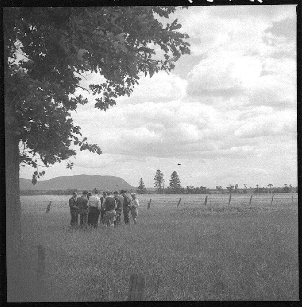 Argile Richelieu, avec le mont Saint-Hilaire en arrière-plan. Saint-Charles, comté de Saint-Hyacinthe