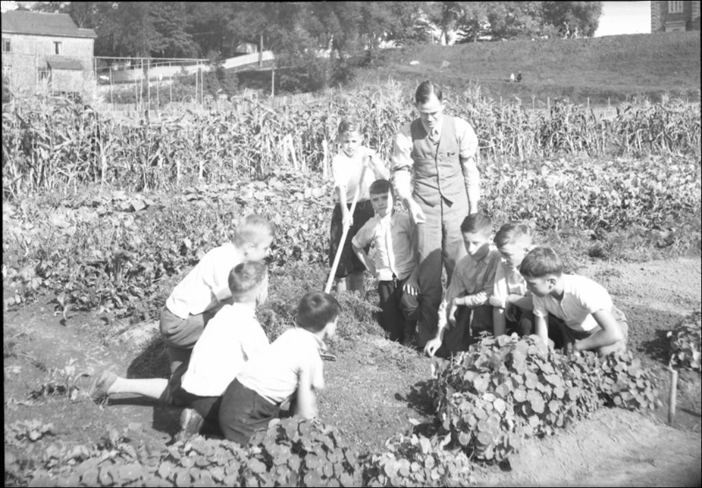 Jean-Charles Magnan faisant une démonstration aux jeunes de Saint-Romuald, 1937, Archives nationales à Québec, Fonds Ministère de la Culture et des Communications, (03Q,E6,S7,SS1,D2,P25), Photographe non identifié.