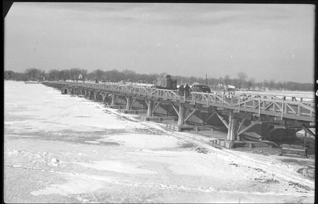 Pont actuel sur la rivière des Mille-Îles à Sainte-Rose, comté de Laval, 1945, Archives nationales à Québec, Fonds Ministère de la Culture et des Communications, (03Q,E6,S7,SS1,D2,P25568), Olivier Desjardins.