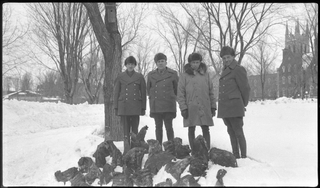 Saisie de viande d'orignaux à Linton, comté de Portneuf, par les officiers Adrien Lapointe, Ovila Bolduc, de Québec, et Oscar Lirette de Saint-Raymond