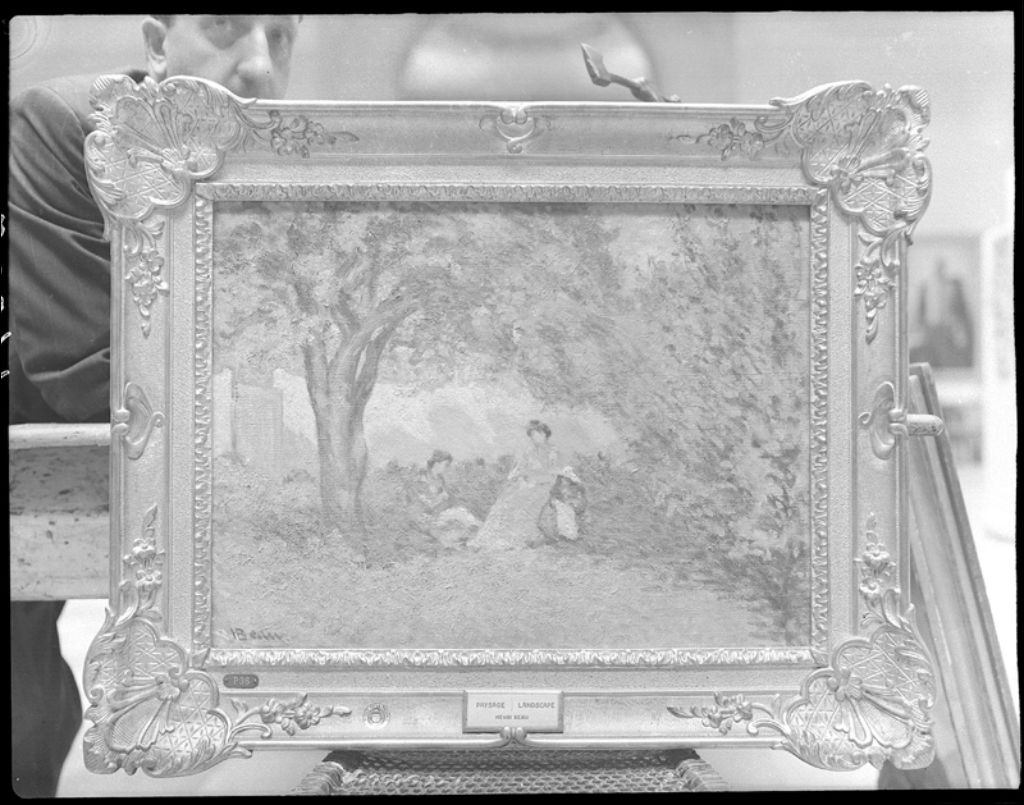 Peinture au Musée provincial de Québec, «Paysage», 1945, Archives nationales à Québec, Fonds Ministère de la Culture et des Communications, (03Q,E6,S7,SS1,D2,P25649), Neuville Bazin.