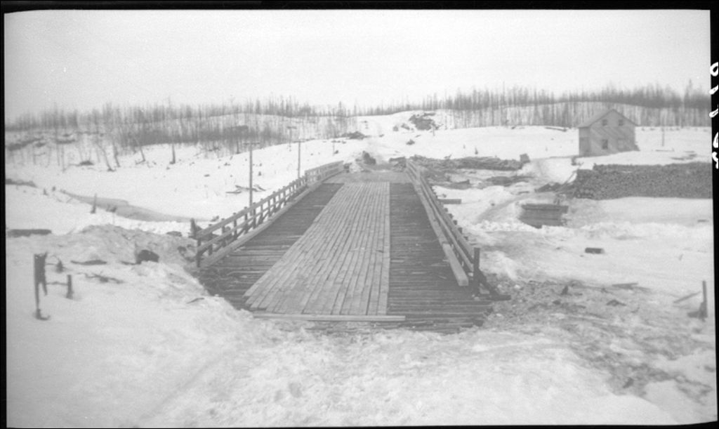 Pont sur la rivière Colombier, comté de Saguenay, 1945, Archives nationales à Québec, Fonds Ministère de la Culture et des Communications, (03Q,E6,S7,SS1,D2,P25798), Albert Roy.