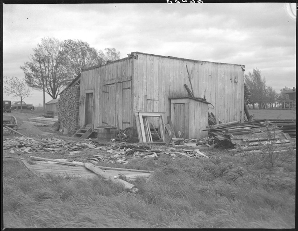 Méfaits d'un cyclone sur des bâtiments de ferme, comté de Champlain, 1945, Archives nationales à Québec, Fonds Ministère de la Culture et des Communications, (03Q,E6,S7,SS1,D2,P26088), Neuville Bazin.