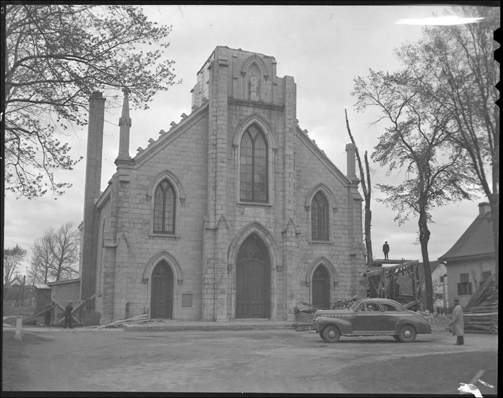 Méfaits d'un cyclone sur des bâtiments de ferme, comté de Champlain, 1945, Archives nationales à Québec, Fonds Ministère de la Culture et des Communications, (03Q,E6,S7,SS1,D2,P26095), Neuville Bazin.