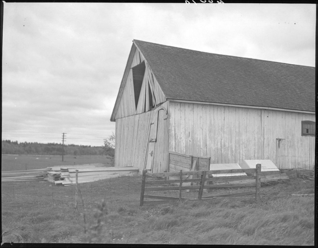 Méfaits d'un cyclone sur des bâtiments de ferme, comté de Champlain, 1945, Archives nationales à Québec, Fonds Ministère de la Culture et des Communications, (03Q,E6,S7,SS1,D2,P26098), Neuville Bazin.