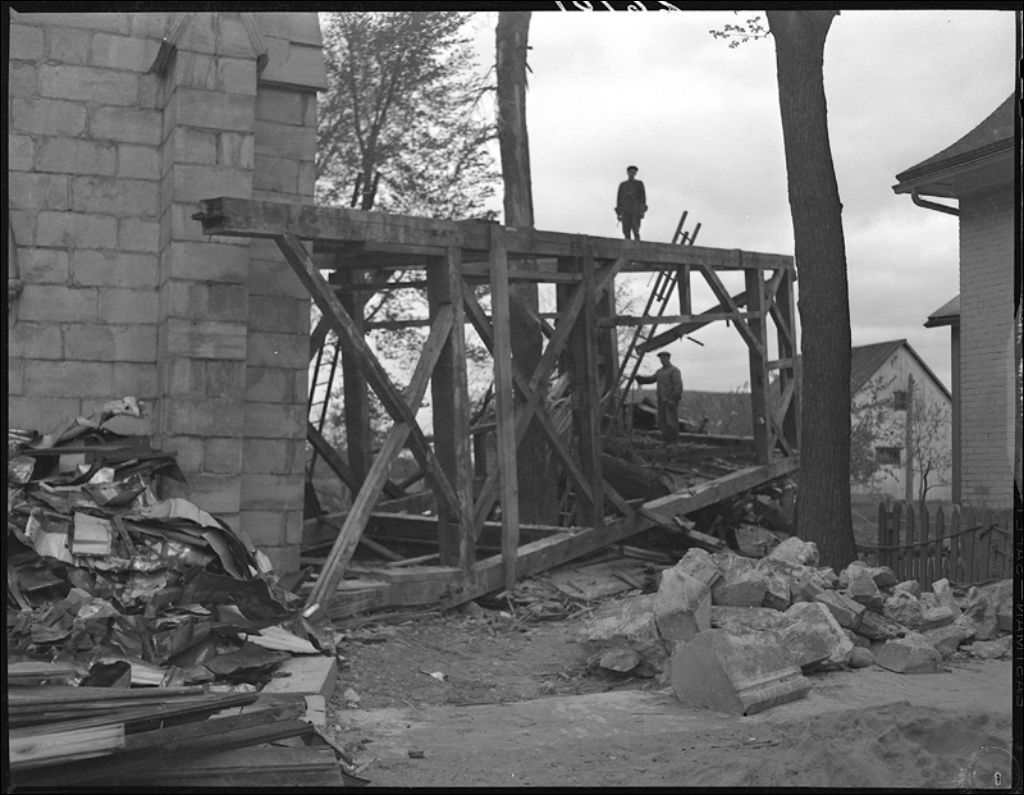 Méfaits d'un cyclone sur des bâtiments de ferme, comté de Champlain