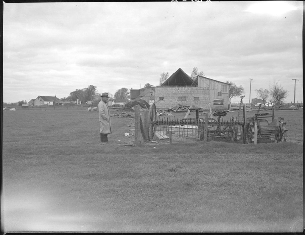 Méfaits d'un cyclone sur des bâtiments de ferme, comté de Champlain