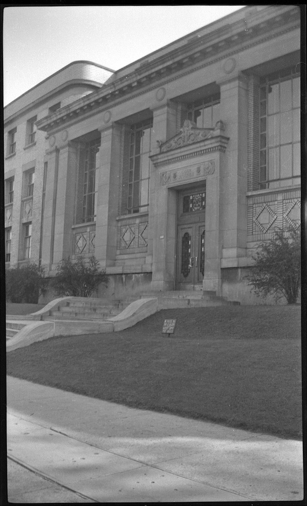 Portique de l'entrée proncipale de l'édifice des jeunes délinquants à Montréal, 1945, Archives nationales à Québec, Fonds Ministère de la Culture et des Communications, (03Q,E6,S7,SS1,D2,P26126), L. Fontaine.
