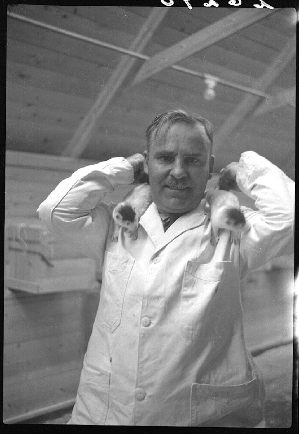 Visons vivants à Courville, 1945, Archives nationales à Québec, Fonds Ministère de la Culture et des Communications, (03Q,E6,S7,SS1,D2,P26290), L. Beaudet.