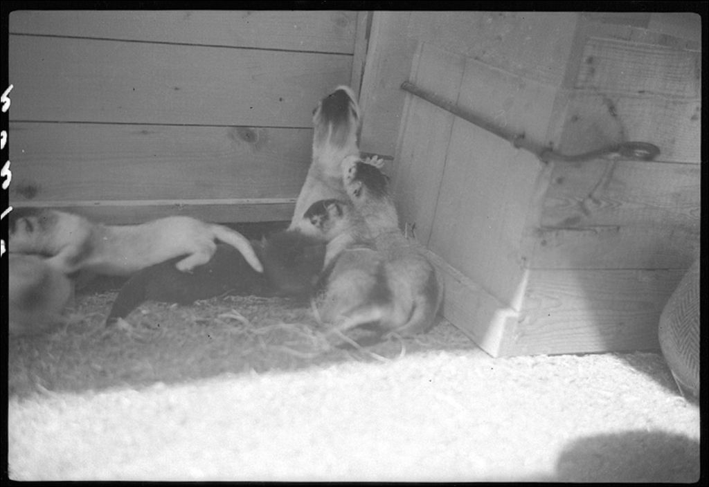 Visons vivants à Courville, 1945, Archives nationales à Québec, Fonds Ministère de la Culture et des Communications, (03Q,E6,S7,SS1,D2,P26295), L. Beaudet.