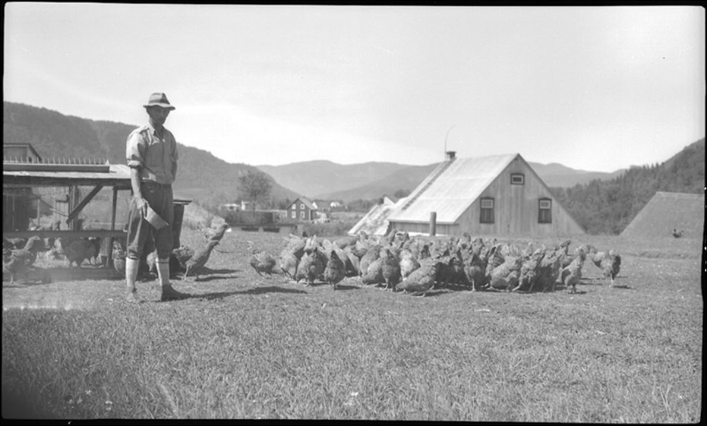 Colonie éleveuse portative à Saint-Raymond, comté de Portneuf, 1945, Archives nationales à Québec, Fonds Ministère de la Culture et des Communications, (03Q,E6,S7,SS1,D2,P26499), François Fleury.