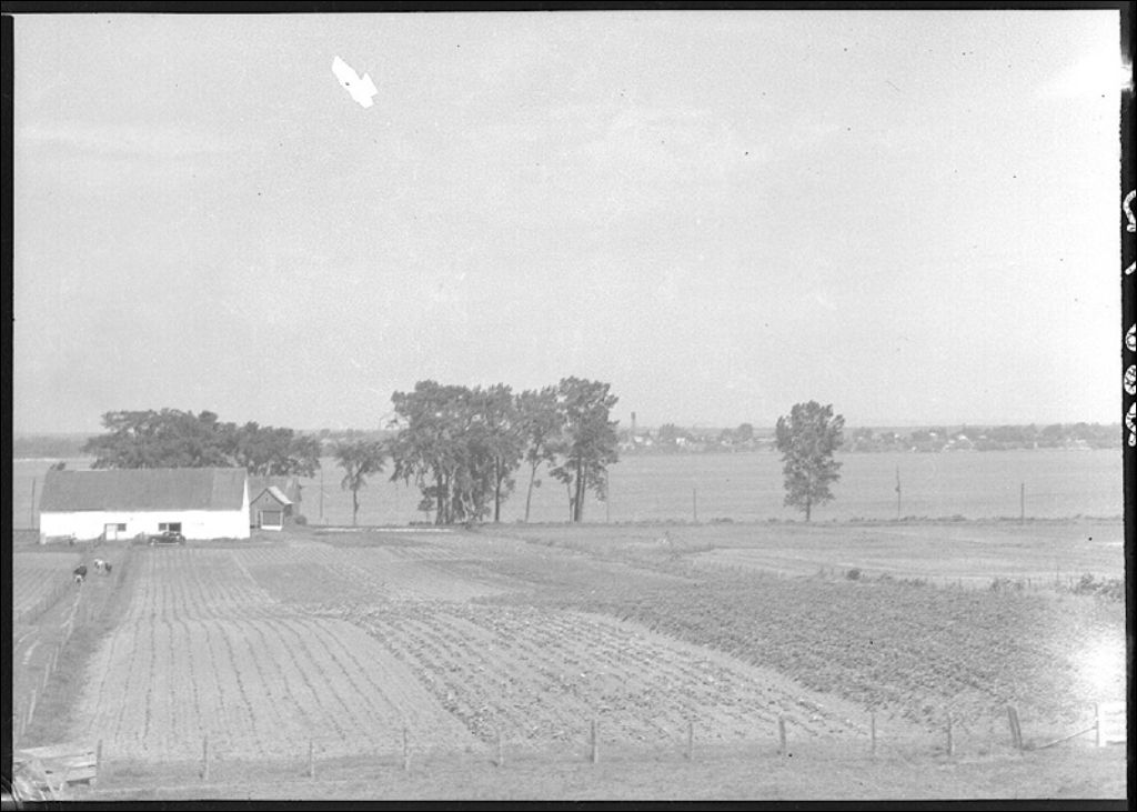 Ensemble de la ferme de Irénée Pépin à Sainte-Angèle-de-Laval, 1945, Archives nationales à Québec, Fonds Ministère de la Culture et des Communications, (03Q,E6,S7,SS1,D2,P26543), Paul Carpentier.