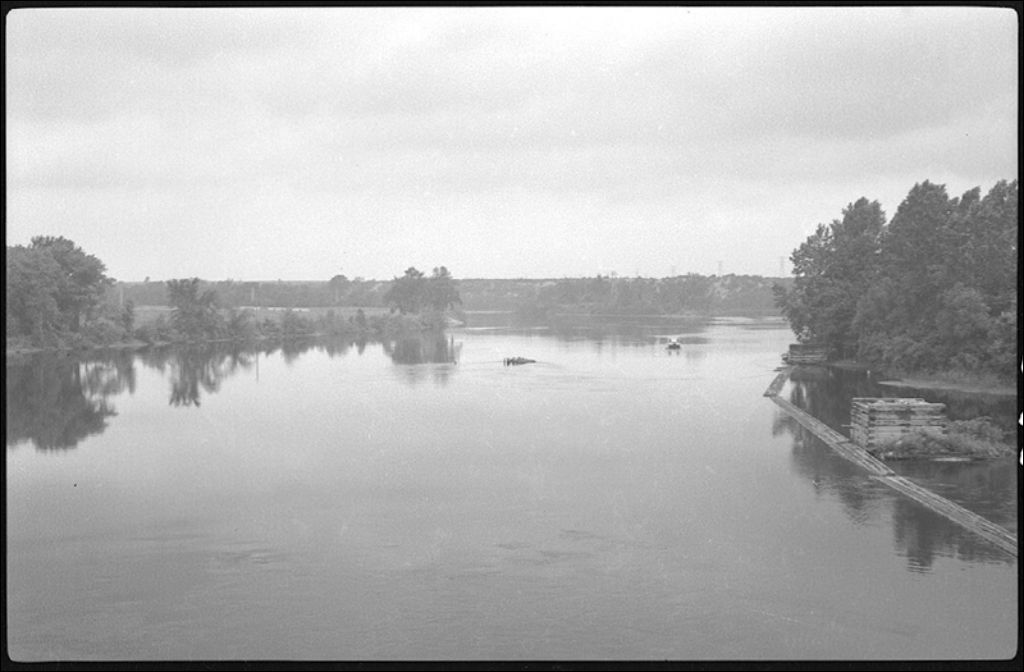 Chenal est de la rivière Saint-Maurice, comté de Trois-Rivières, 1945, Archives nationales à Québec, Fonds Ministère de la Culture et des Communications, (03Q,E6,S7,SS1,D2,P26685), Marcel Levert.