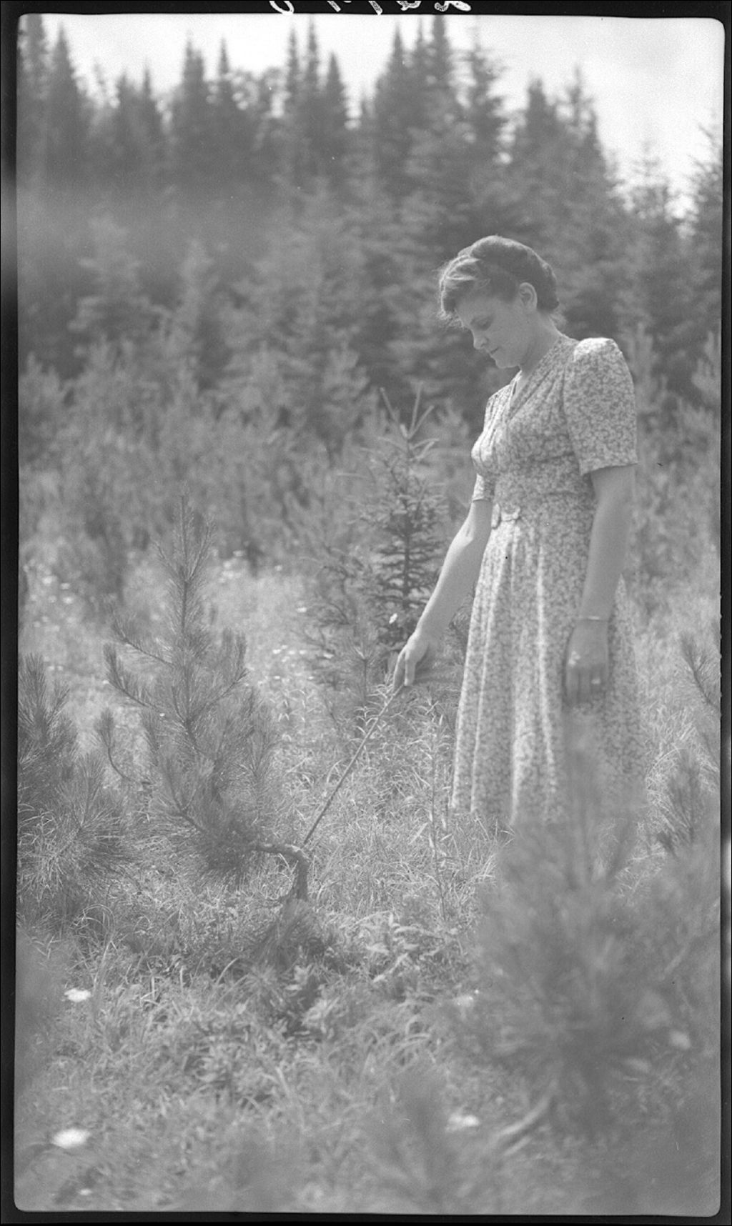 Jeune pin rouge plié par la neige à Morin Heights, 1945, Archives nationales à Québec, Fonds Ministère de la Culture et des Communications, (03Q,E6,S7,SS1,D2,P26748), Roch Delisle.