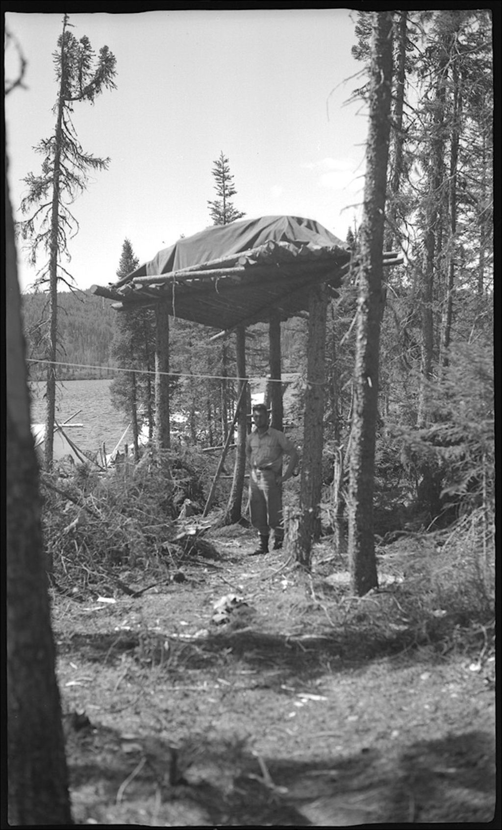 Support pour protéger la nourriture des ours, Côte-Nord, 1945, Archives nationales à Québec, Fonds Ministère de la Culture et des Communications, (03Q,E6,S7,SS1,D2,P27004), Jacques Claveau.