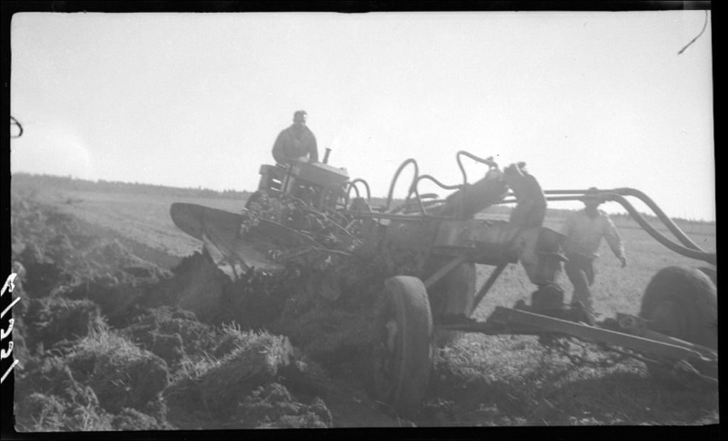 Charrue hydraulique à La Sarre, Abitibi, 1945, Archives nationales à Québec, Fonds Ministère de la Culture et des Communications, (03Q,E6,S7,SS1,D2,P27337), J.R. Pelletier.