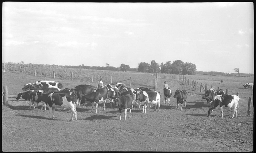 Bétail Holstein à Rivière-des-Prairies, 1945, Archives nationales à Québec, Fonds Ministère de la Culture et des Communications, (03Q,E6,S7,SS1,D2,P27367), François Fleury.
