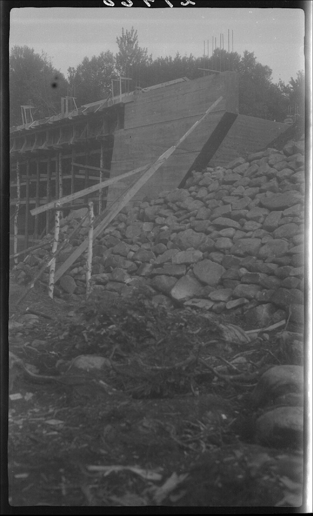 Culée du pont dans le canton Ditchfield-Spalding, 1945, Archives nationales à Québec, Fonds Ministère de la Culture et des Communications, (03Q,E6,S7,SS1,D2,P27468), Louis-Philippe Poudrier.