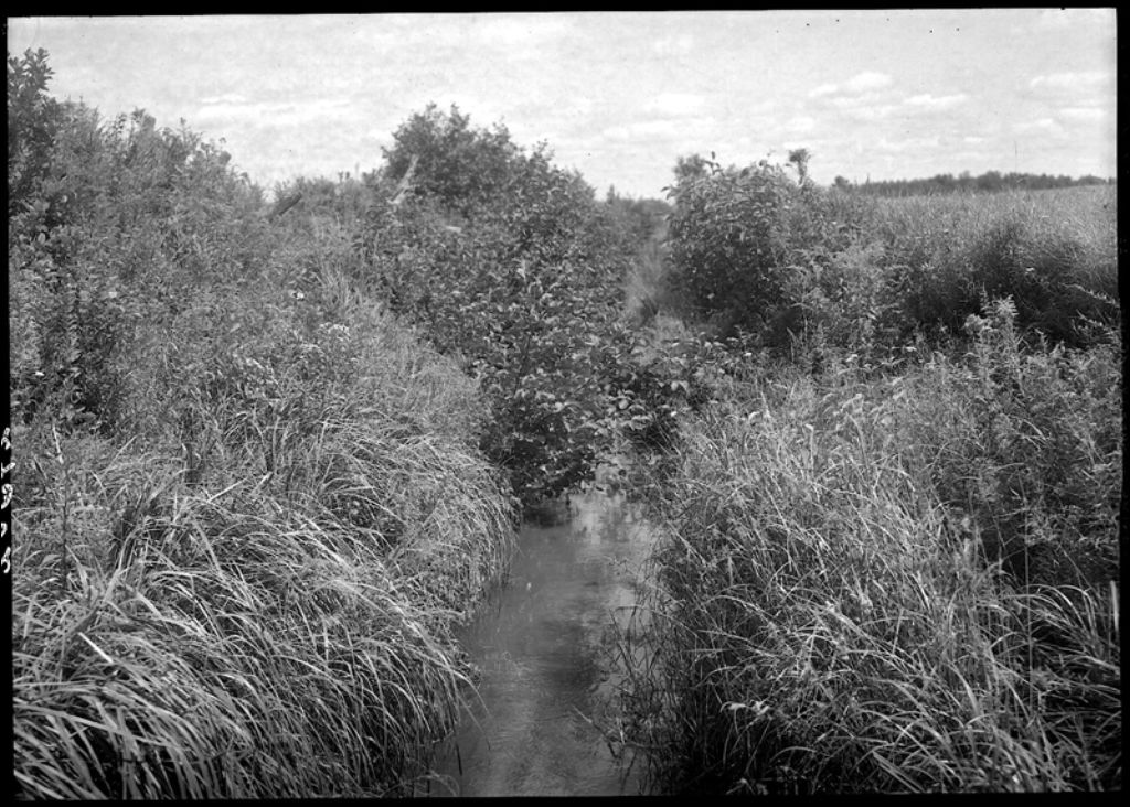 Petit cours d'eau embroussaillé sur la ferme de Léo Leclerc à Sainte-Marthe-du-Cap-de-la-Madeleine