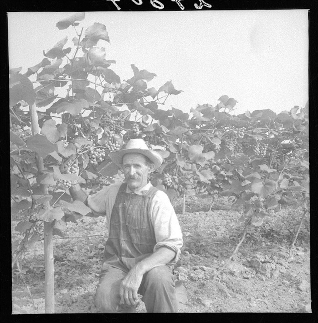 M. Gonzalve Biron et sa récolte de raisins à Saint-Elphège
