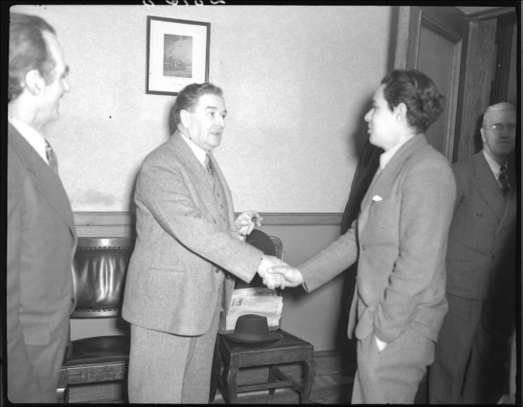 Photo d'André Mathieu chez le Premier Ministre, l'Honorable Maurice Duplessis