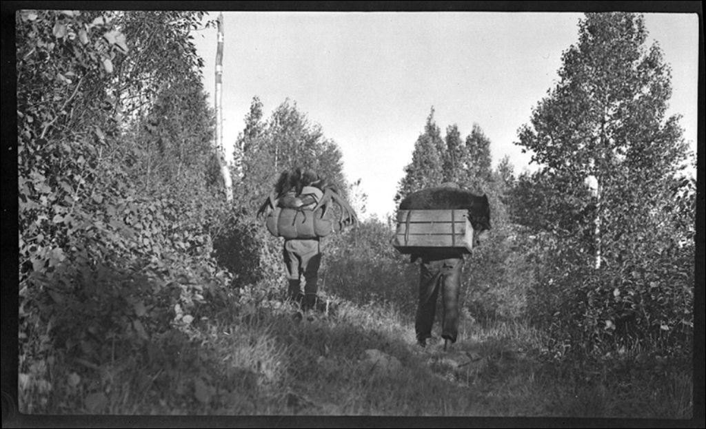 Deux guides sur le portage du lac Big Birch à Kipawa
